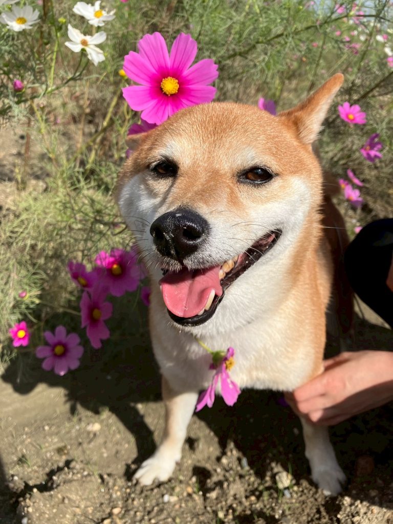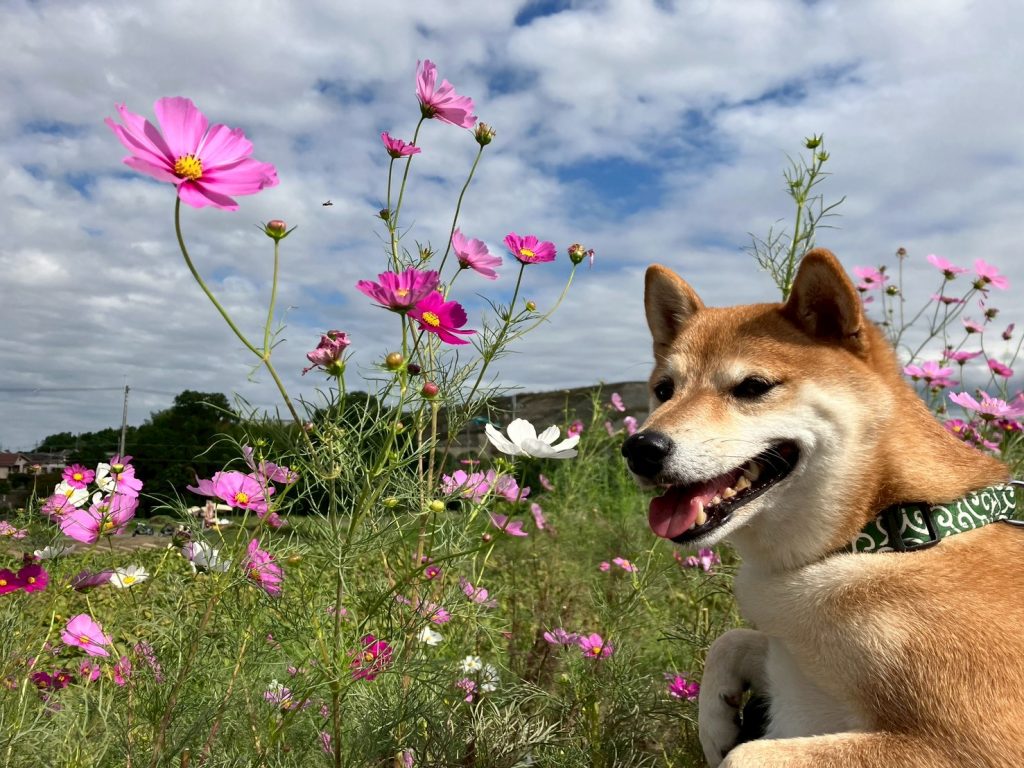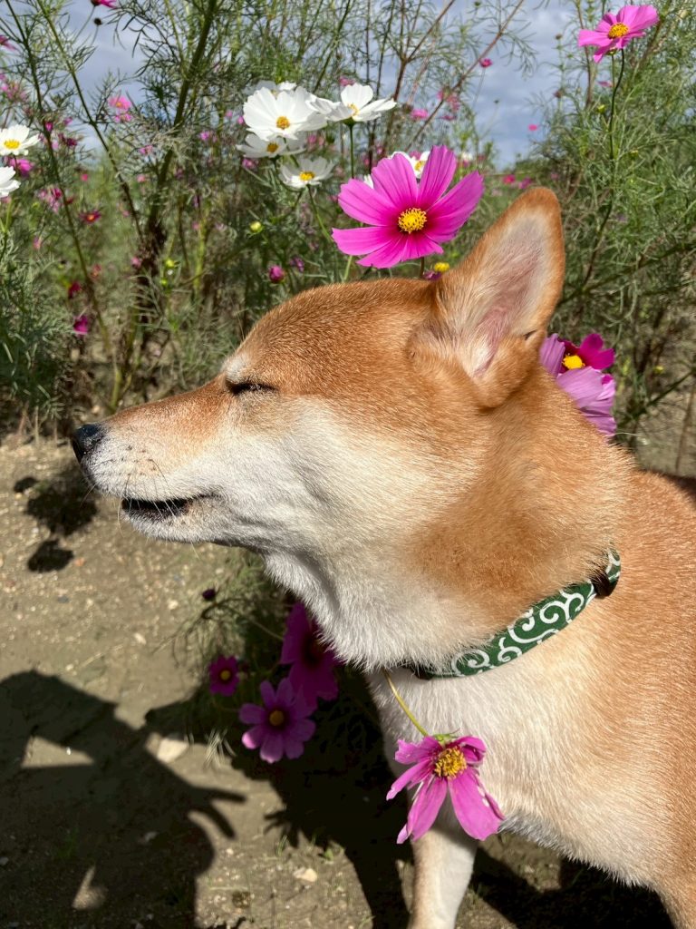 また、この季節は近くのコスモス畑にぎんとお出かけするのが恒例になっています。